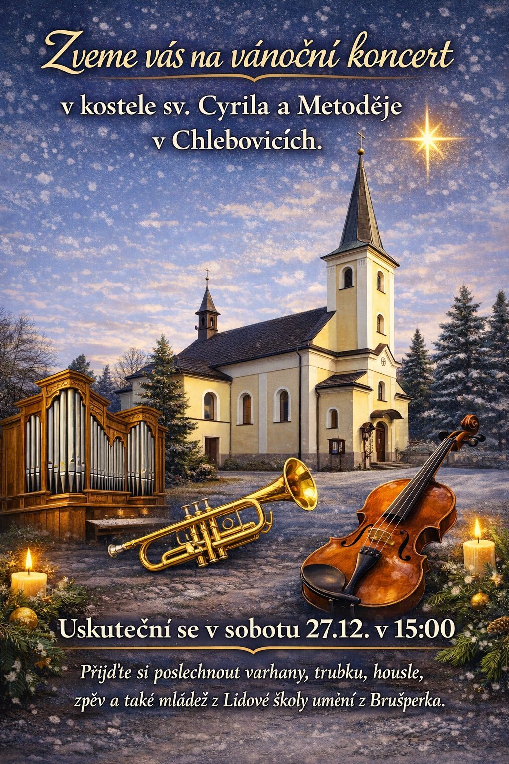 Zveme Vás na vánoční koncert. 27.12. v 15:00 v kostele v Chlebovicích.
